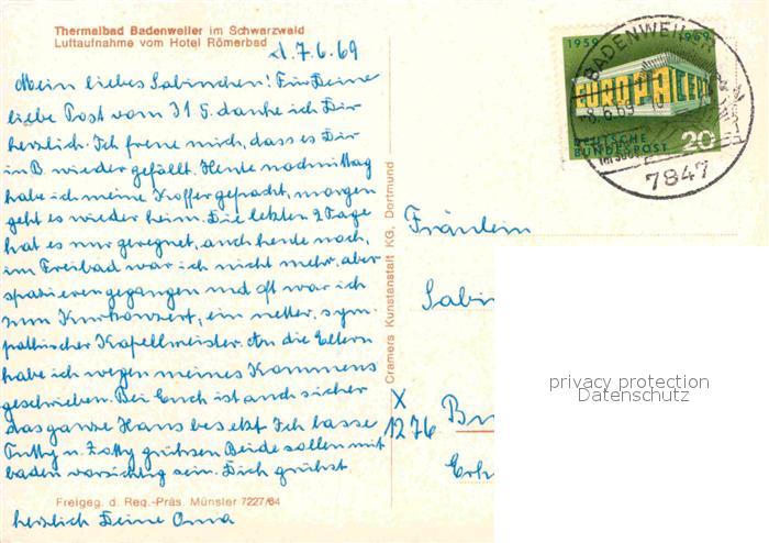 72826005 alte Postkarte BADENWEILER BW Fliegeraufnahme Hotel Roemerbad postalisch gelaufen Erhaltung siehe scans [AndreD76] KatCode: 11110008315007
