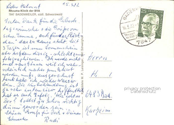 71831890 alte Postkarte BADENWEILER BW Fliegeraufnahme Rheuma-Klinik BVA postalisch gelaufen Erhaltung siehe scans KatCode: 11110008315007