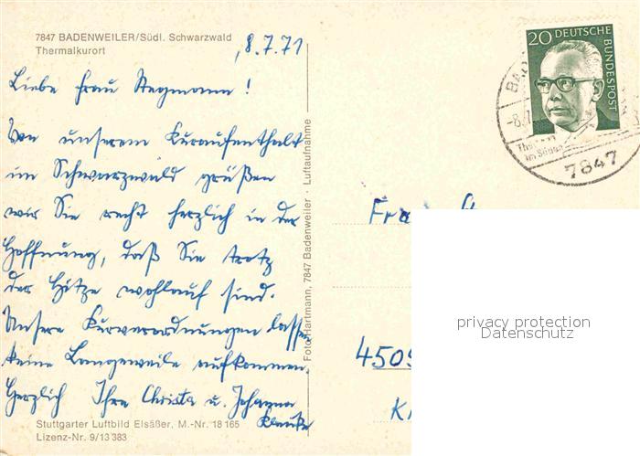 72683556 alte Postkarte BADENWEILER BW Fliegeraufnahme Thermalkurort postalisch gelaufen Erhaltung siehe scans [LiesaD40] KatCode: 11110008315007