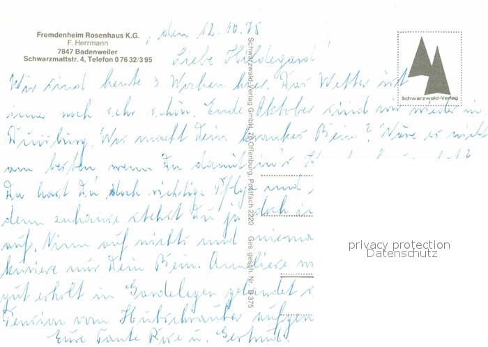 72840291 alte Postkarte BADENWEILER BW Fremdenheim Rosenhaus KG Fliegeraufnahme postalisch gelaufen Erhaltung siehe scans [WerneD78] KatCode: 11110008315007