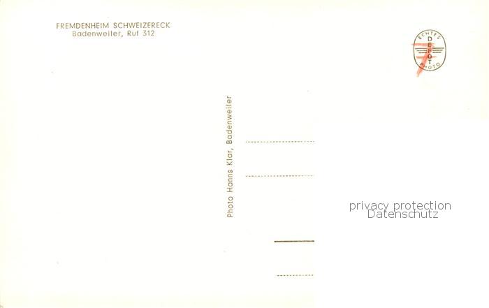 73800085 BADENWEILER BW Fremdenheim Schweizereck postalisch nicht gelaufen Erhaltung siehe scans [FriedD77] Frie Katcode 11110008315007