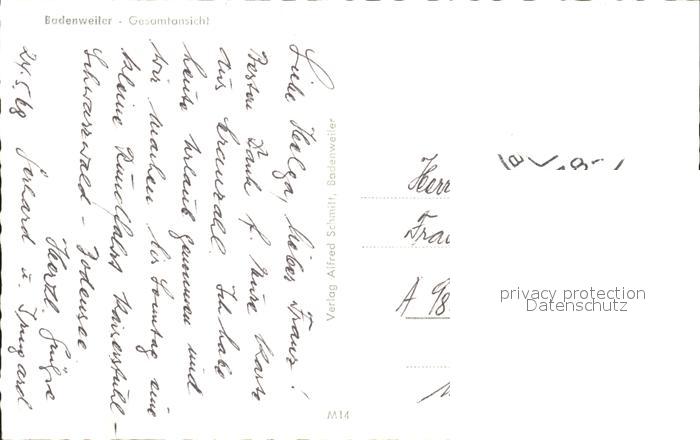 72370348 alte Postkarte BADENWEILER BW Gesamtansicht postalisch gelaufen Erhaltung siehe scans KatCode: 11110008315007
