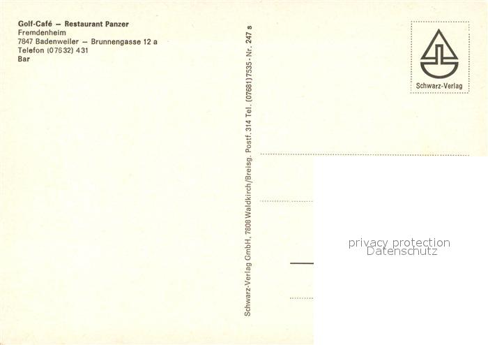 73091579 BADENWEILER BW Golf Cafe Restaurant Panzer postalisch nicht gelaufen Erhaltung siehe scans [KathaD81] KatCode: 11110008315007