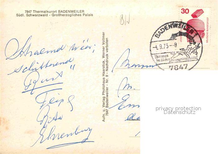 72678515 alte Postkarte BADENWEILER BW Grossherzogliches Palais Thermalkurort postalisch gelaufen Erhaltung siehe scans [FriedD77] KatCode: 11110008315007