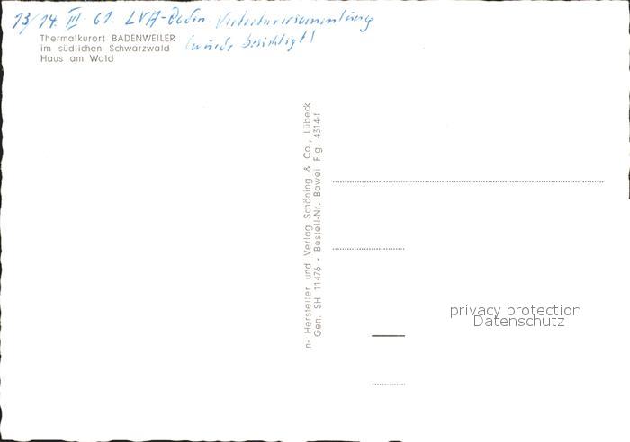 71832249 BADENWEILER BW Haus am Wald postalisch nicht gelaufen Erhaltung siehe scans KatCode: 11110008315007