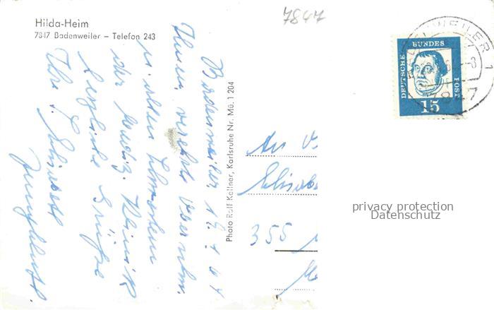 74058491 alte Postkarte BADENWEILER BW Hildaheim Blick vom Ingerberg Speisesaal Gartenseite postalisch gelaufen Erhaltung siehe scans [WerneD78] KatCode: 11110008315007