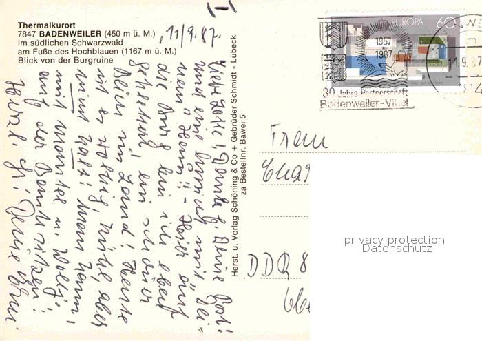 72631256 alte Postkarte BADENWEILER BW Hochblauen Blick von Burgruine postalisch gelaufen Erhaltung siehe scans [LiesaD40] KatCode: 11110008315007