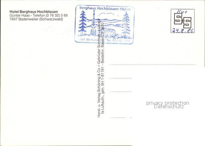 72581616 BADENWEILER BW Hotel Berghaus Hochblauen postalisch nicht gelaufen Erhaltung siehe scans [AndreD76] KatCode: 11110008315007