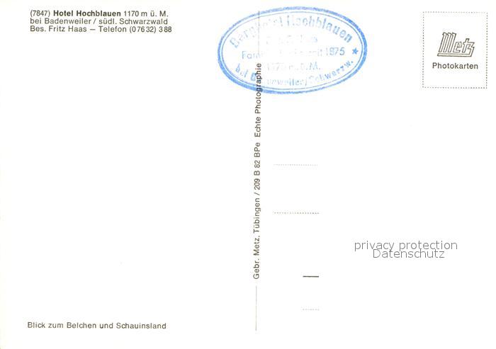 72984963 BADENWEILER BW Hotel Hochblauen Aussichtsturm postalisch nicht gelaufen Erhaltung siehe scans [WerneD78] KatCode: 11110008315007