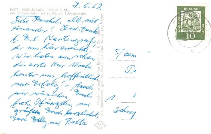 73914751 BADENWEILER BW Hotel Hochblauen Fliegeraufnahme postalisch gelaufen Erhaltung siehe scans [FriedD77] alte Postkarte Frie Katcode 11110008315007