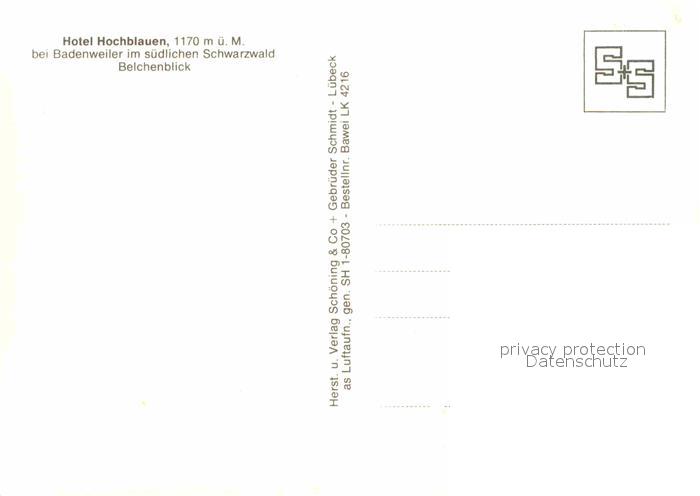 72666300 BADENWEILER BW Hotel Hochblauen mit Belchenblick Schwarzwald Fliegeraufnahme postalisch nicht gelaufen Erhaltung siehe scans [FriedD77] KatCode: 11110008315007
