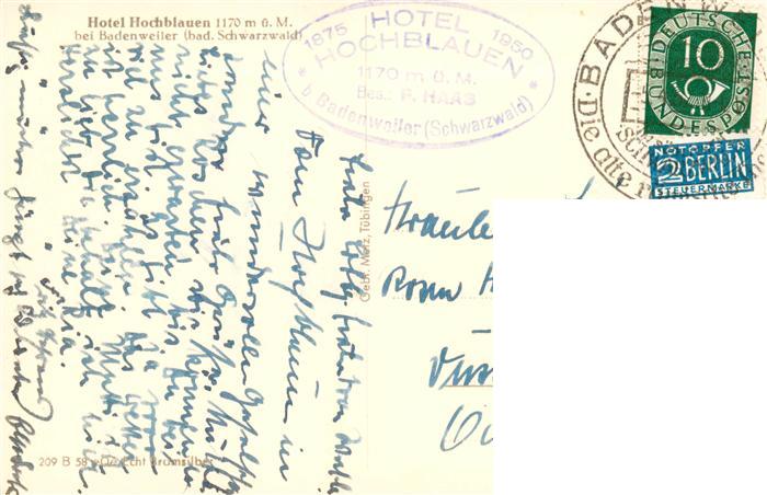 73911705 BADENWEILER BW Hotel Hochblauen Restaurant Fernsicht Schwarzwald Alpen postalisch gelaufen Erhaltung siehe scans [FriedD77] alte Postkarte Frie Katcode 11110008315007