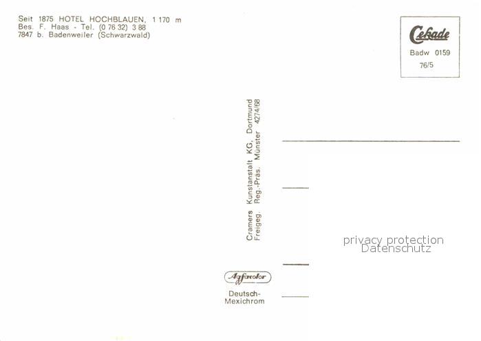 72666296 BADENWEILER BW Hotel Hochblauen Schwarzwald Fliegeraufnahme postalisch nicht gelaufen Erhaltung siehe scans [FriedD77] KatCode: 11110008315007