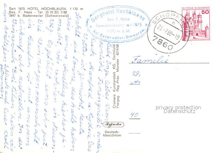 72964705 alte Postkarte BADENWEILER BW Hotel Hochblauen Schwarzwald Fliegeraufnahme postalisch gelaufen Erhaltung siehe scans [FriedD77] KatCode: 11110008315007