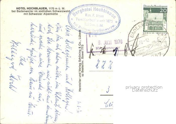 71866485 alte Postkarte BADENWEILER BW Hotel Hochblauen Schweizer Alpenkette postalisch gelaufen Erhaltung siehe scans KatCode: 11110008315007