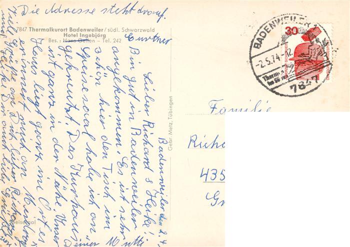 73921378 BADENWEILER BW Hotel Ingebjoerg postalisch gelaufen Erhaltung siehe scans [WerneD78] alte Postkarte Wern Katcode 11110008315007