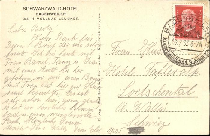 41003172 BADENWEILER BW Hotel Parkfront postalisch gelaufen Alte Ansichtskarte Postkarte alte Postkarte Katcode 11110008315007
