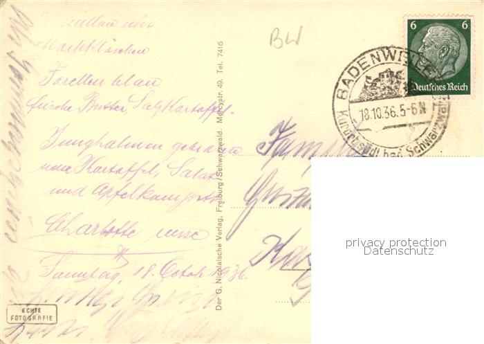 43057836 BADENWEILER BW Hotel Pension Haus Saupe postalisch gelaufen Erhaltung siehe scans [KathaD81] alte Postkarte Kath Katcode 11110008315007