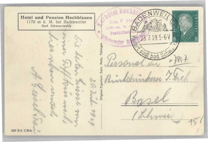 40728463 BADENWEILER BW Hotel Pension Hochblauen postalisch gelaufen Alte Ansichtskarte Postkarte alte Postkarte Katcode 11110008315007