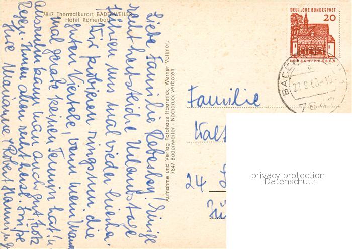 73860573 BADENWEILER BW Hotel Roemerbad Terrasse postalisch gelaufen Erhaltung siehe scans [WerneD78] alte Postkarte Wern Katcode 11110008315007