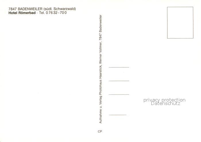 73093799 BADENWEILER BW Hotel Roemerbad postalisch nicht gelaufen Erhaltung siehe scans [KathaD81] KatCode: 11110008315007