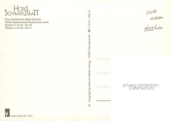 73865073 BADENWEILER BW Hotel Schwarzmatt im Schwarzwald postalisch nicht gelaufen Erhaltung siehe scans [FriedD77] Frie Katcode 11110008315007