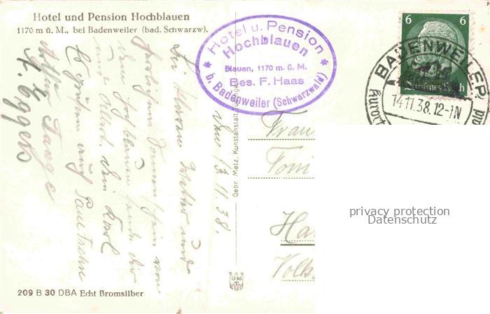 74153732 alte Postkarte BADENWEILER BW Hotel und Pension Hochblauen postalisch gelaufen Erhaltung siehe scans [WerneD78] KatCode: 11110008315007