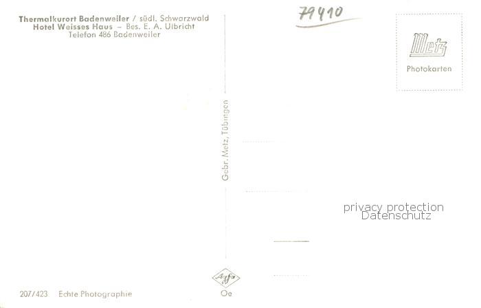 73761710 BADENWEILER BW Hotel Weisses Haus Thermalkurort im Schwarzwald postalisch nicht gelaufen Erhaltung siehe scans [FriedD77] Frie Katcode 11110008315007