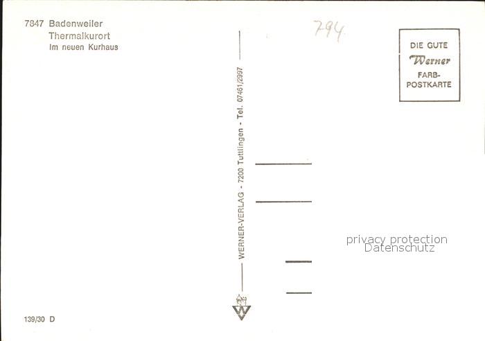 72613679 BADENWEILER BW Im neuen Kurhaus postalisch nicht gelaufen Erhaltung siehe scans [WerneD78] KatCode: 11110008315007