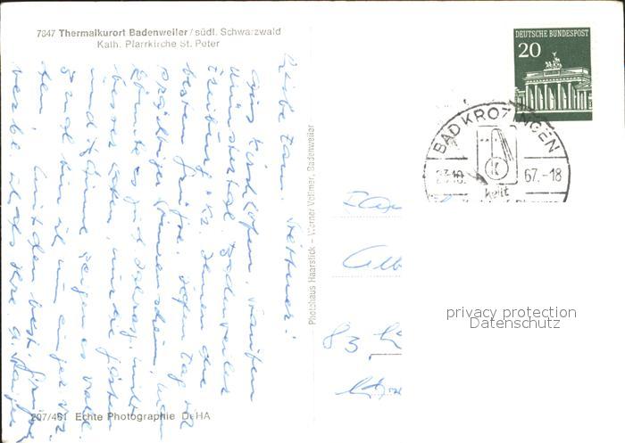 71929167 alte Postkarte BADENWEILER BW Kath Pfarrkirche St Peter Burgruine postalisch gelaufen Erhaltung siehe scans KatCode: 11110008315007