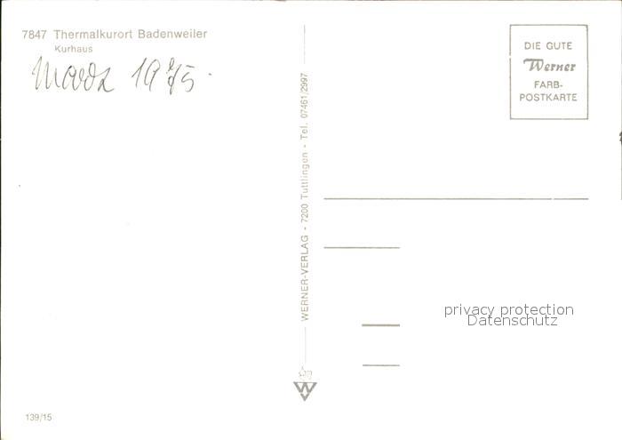 72433802 BADENWEILER BW Kurhaus Burgruine postalisch nicht gelaufen Erhaltung siehe scans KatCode: 11110008315007