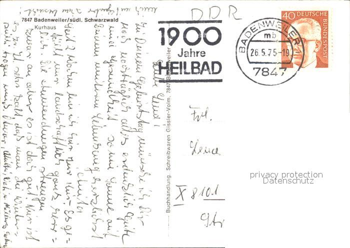 72528248 alte Postkarte BADENWEILER BW Kurhaus Burgruine Kurort im Schwarzwald postalisch gelaufen Erhaltung siehe scans KatCode: 11110008315007