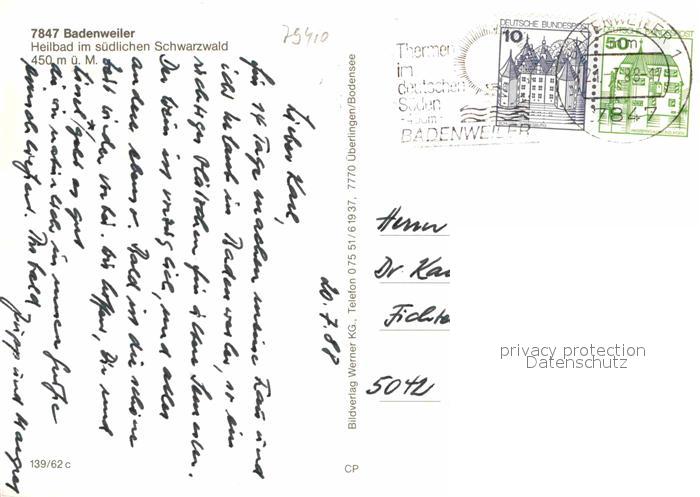 72705734 alte Postkarte BADENWEILER BW Kurpark postalisch gelaufen Erhaltung siehe scans [AndreD76] KatCode: 11110008315007