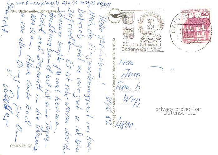 72722038 alte Postkarte BADENWEILER BW Kurpark Promenade Kurhaus Freibad Thermalbad Fontaene postalisch gelaufen Erhaltung siehe scans [FriedD77] KatCode: 11110008315007