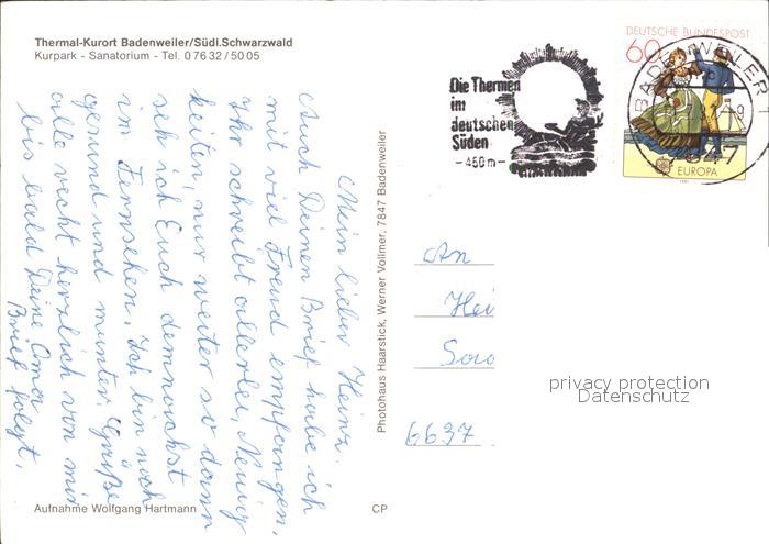72052669 alte Postkarte BADENWEILER BW Kurpark Sanatorium Roseneck postalisch gelaufen Erhaltung siehe scans KatCode: 11110008315007