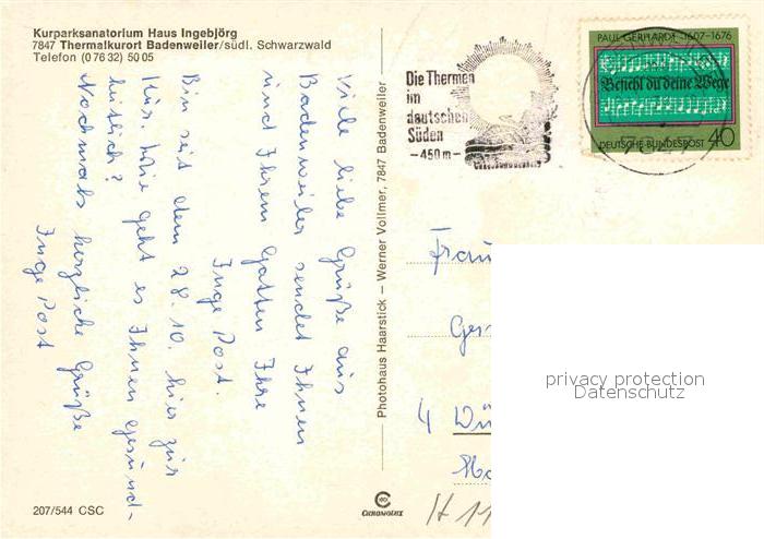 72907967 alte Postkarte BADENWEILER BW Kurparksanatorium Haus Ingebjoerg Kurort Schwarzwald postalisch gelaufen Erhaltung siehe scans [FriedD77] KatCode: 11110008315007