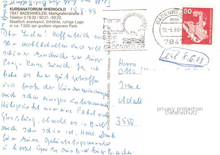 72793604 alte Postkarte BADENWEILER BW Kursanatorium Rheingold Baumbluete postalisch gelaufen Erhaltung siehe scans [FriedD77] KatCode: 11110008315007