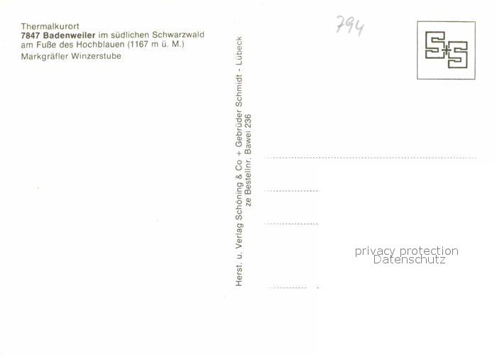 72639137 BADENWEILER BW Markgraefler Winzerstube postalisch nicht gelaufen Erhaltung siehe scans [WerneD78] KatCode: 11110008315007