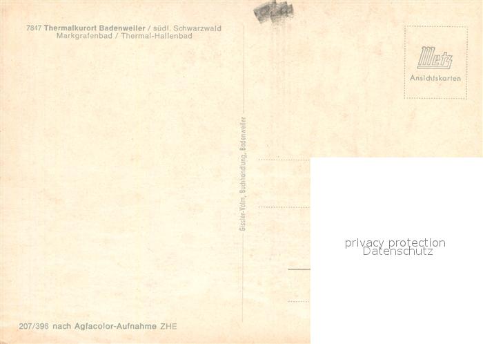 72954603 BADENWEILER BW Markgrafen Thermal Hallenba postalisch nicht gelaufen Erhaltung siehe scans [WerneD78] KatCode: 11110008315007