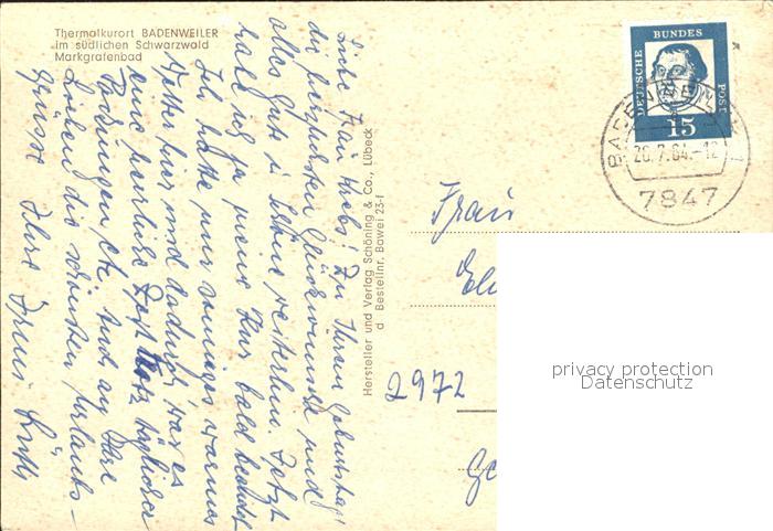 72304144 alte Postkarte BADENWEILER BW Markgrafenbad postalisch gelaufen Erhaltung siehe scans KatCode: 11110008315007