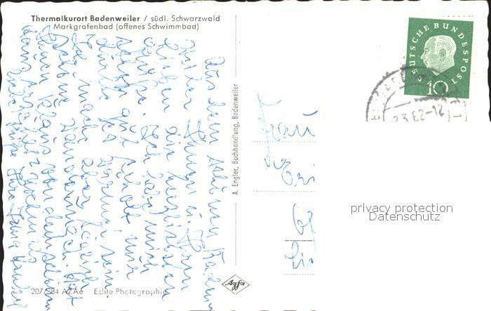 72275328 alte Postkarte BADENWEILER BW Markgrafenbad postalisch gelaufen Erhaltung siehe scans KatCode: 11110008315007