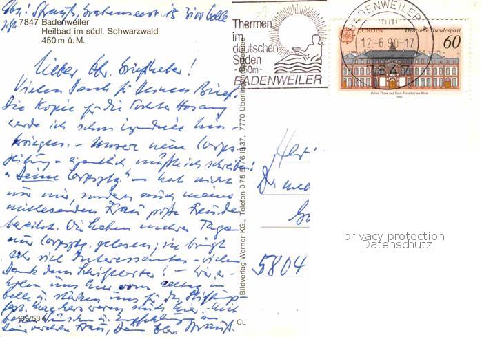 72886525 alte Postkarte BADENWEILER BW Markgrafenbad Heilbad Kurort Schwarzwald postalisch gelaufen Erhaltung siehe scans [FriedD77] KatCode: 11110008315007