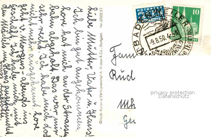 72808901 alte Postkarte BADENWEILER BW Markgrafenbad Kurort Schwarzwald postalisch gelaufen Erhaltung siehe scans [FriedD77] KatCode: 11110008315007