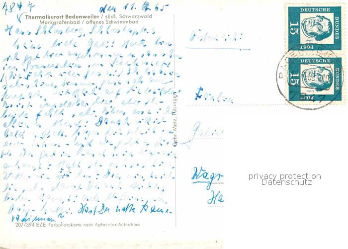 72919450 alte Postkarte BADENWEILER BW Markgrafenbad Schwimmbad Thermalkurort Schwarzwald postalisch gelaufen Erhaltung siehe scans [FriedD77] KatCode: 11110008315007