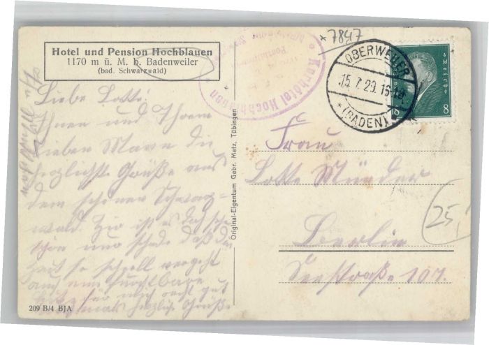 40728540 BADENWEILER BW ? Oberweiler Hotel Pension Hochblauen postalisch gelaufen Alte Ansichtskarte Postkarte alte Postkarte Katcode 11110008315007
