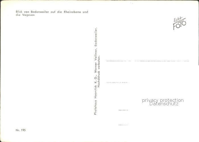 72090744 BADENWEILER BW Panorama Blick auf Rheinebene und Vogesen postalisch nicht gelaufen Erhaltung siehe scans KatCode: 11110008315007