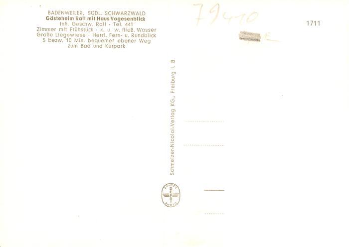 73970892 BADENWEILER BW Panorama Blick auf Rheintal und Vogesen Gaesteheim Rall Haus Vogesenblick postalisch nicht gelaufen Erhaltung siehe scans [FriedD77] KatCode: 11110008315007