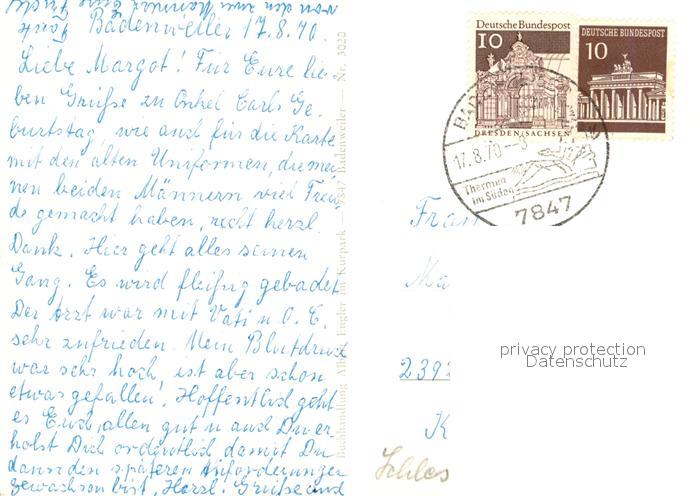73018942 alte Postkarte BADENWEILER BW Panorama Hallenbad Minigolfplatz Thermalschwimmbad Kurkonzert Kurpark postalisch gelaufen Erhaltung siehe scans [WerneD78] KatCode: 11110008315007