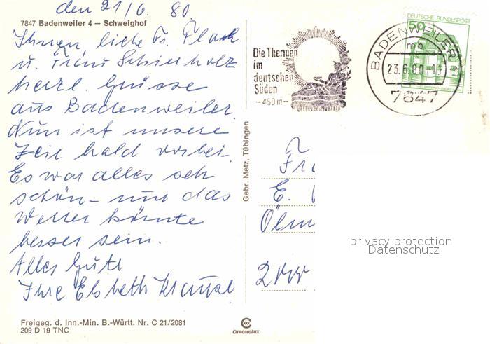 72705428 alte Postkarte BADENWEILER BW Panorama Schweighof postalisch gelaufen Erhaltung siehe scans [WerneD78] KatCode: 11110008315007