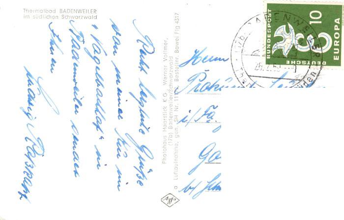 73899667 BADENWEILER BW Panorama Thermalbad im Schwarzwald postalisch gelaufen Fliegeraufnahme Erhaltung siehe scans [FriedD77] Fliegeraufnahme alte Postkarte Frie Katcode 11110008315007